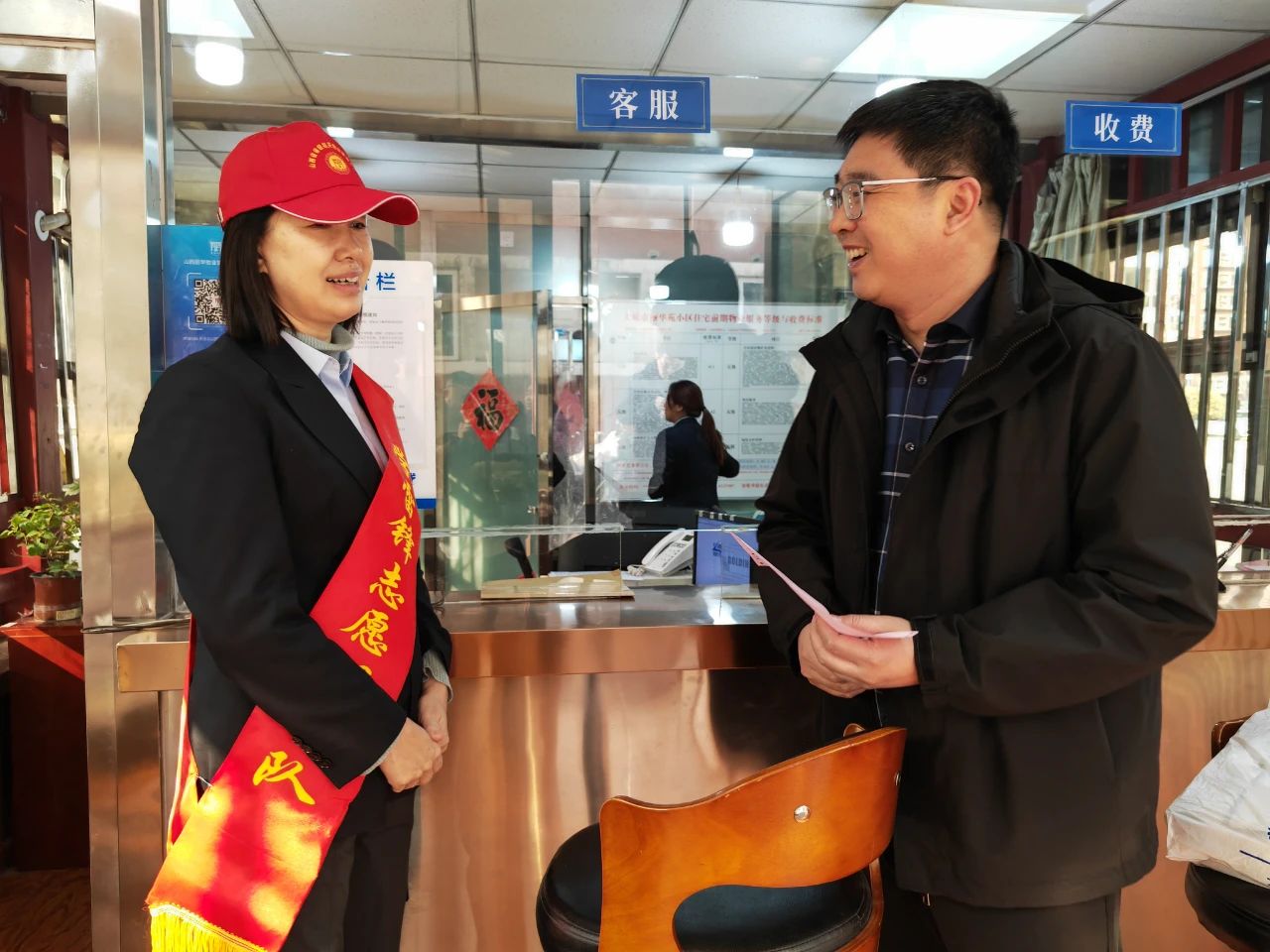 麗華物業濱西集中辦公區設立健康檢測臺,免費為駐辦公區干部職工提供測血糖、量血壓等服務,切實將志愿服務理念深入人心。